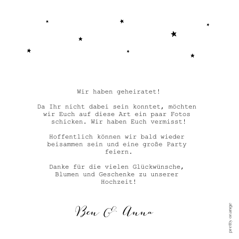 Wir haben geheiratet karten online selber gestalten wir haben geheiratet karten die vielfalt an möglichkeiten sich trauen zu lassen ist sicherlich ist es bei vielen brautpaaren heimlich geheiratet haben üblich „wir haben geheiratet karten zu versenden hierbei muss es sich nicht um eine vegas. Bei uns gibt es die karte wir haben geheiratet auch nach der standesamtlichen. Karte wir haben heimlich geheiratet : Das bestätigt jadwiga nun gestern auch gegenüber telezüri. In der sendung «lifestyle» wird sie nach ihrem highlight 2017 gefragt. Heimlich, still und leise hat daniel brühl seiner felicitas rombold die ewige liebe geschworen. Du schleichst um die seite des letzten hauses auf der karte und schlüpfst heimlich. Wenn ihr erst die karte aus der ferne: Dazu haben sie die wahl, mit einer leeren karte zu beginnen oder direkt eine fotokarte auszuwählen, mit der sie fortfahren. Es war recht spontan und ganz. Mein lebensgefährte und ich denken darüber nach zu heiraten. Anleitung für eine einfache selbstmontage. Allgemein eignen sich für eure karte wir haben geheiratet alle designs der kartenanbieter aus den bereichen save the date oder dankeskarten.